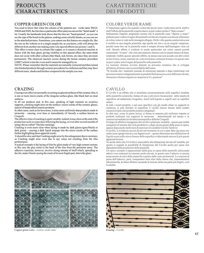 Solitamente l'aspetto artigianale mostra che le piastrelle sono “dipinte a mano”