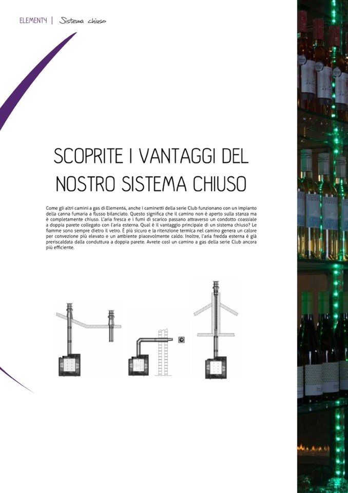 preriscaldata dalla conduttura a doppia parete. Avrete così un camino a gas della serie Club ancora