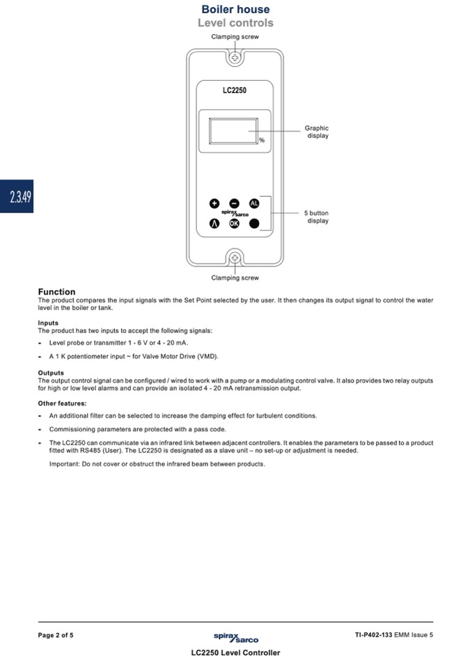 fitted with RS485 (User). The LC2250 is designated as a slave unit – no set-up or adjustment is needed.