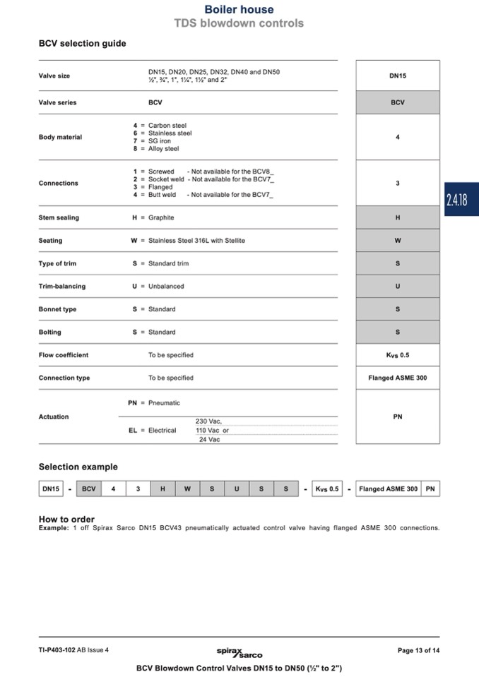 Example: 1 off Spirax Sarco DN15 BCV43 pneumatically actuated control valve having flanged ASME 300 connections.
