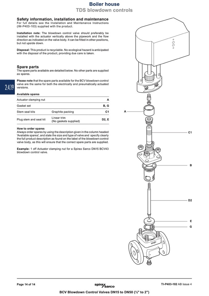 Example: 1 off Actuator clamping nut for a Spirax Sarco DN15 BCV43