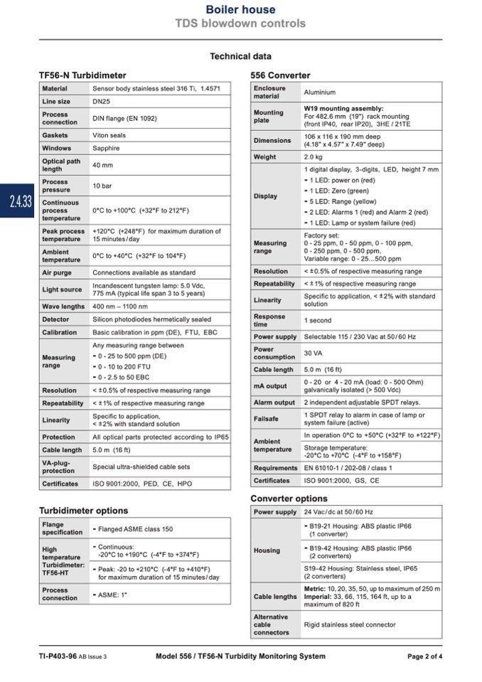 0 - 10 to 200 FTU
