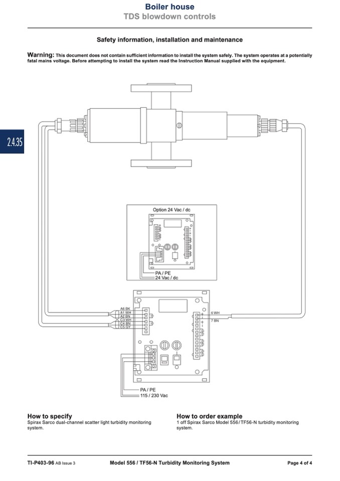 1 off Spirax Sarco Model 556/TF56-N turbidity monitoring