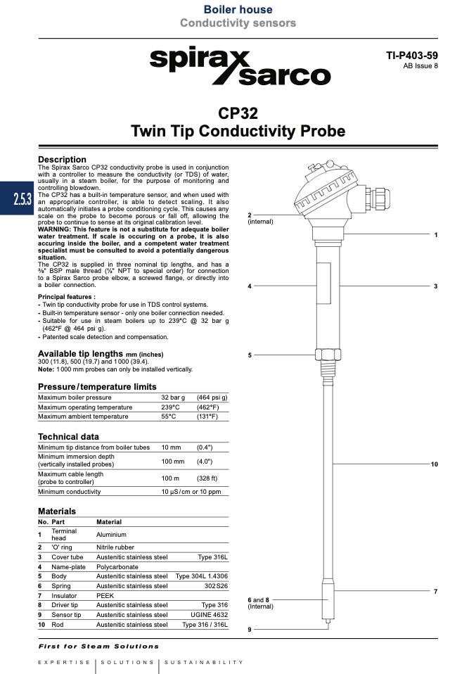 The Spirax Sarco CP32 conductivity probe is used in conjunction
