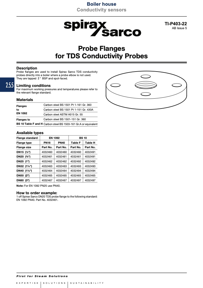 Probe flanges are used to install Spirax Sarco TDS conductivity