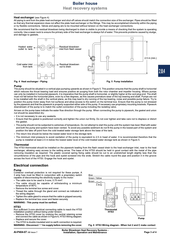 The HTS3 thermostat should be installed on the pipework leading from the flash vessel drain to the heat exchanger inlet, near to the heat