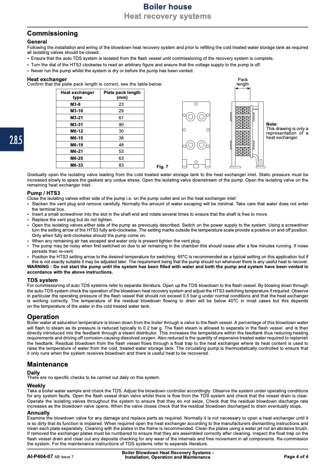 Following the installation and wiring of the blowdown heat recovery system and prior to refilling the cold treated water storage tank as required