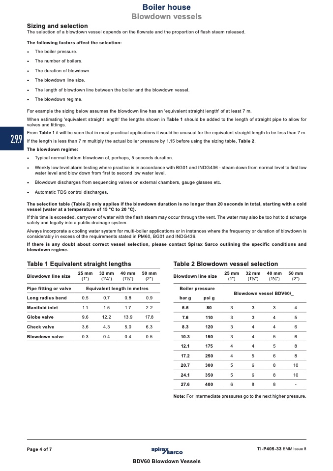 If there is any doubt about correct vessel selection, please contact Spirax Sarco outlining the specific conditions and