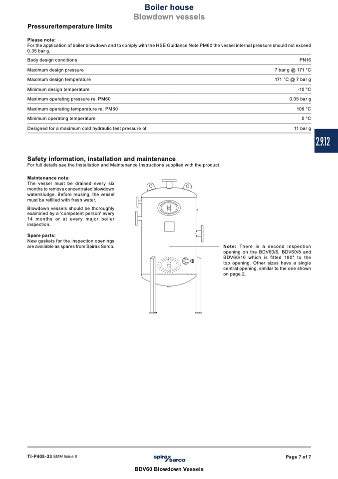 For the application of boiler blowdown and to comply with the HSE Guidance Note PM60 the vessel internal pressure should not exceed