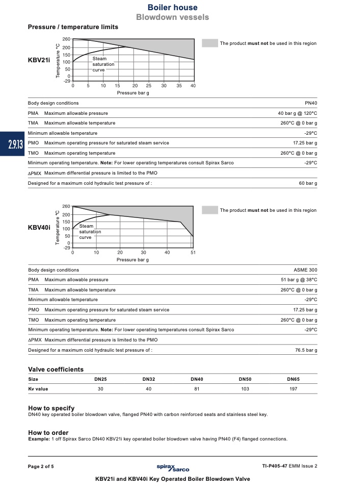 Example: 1 off Spirax Sarco DN40 KBV21i key operated boiler blowdown valve having PN40 (F4) flanged connections.