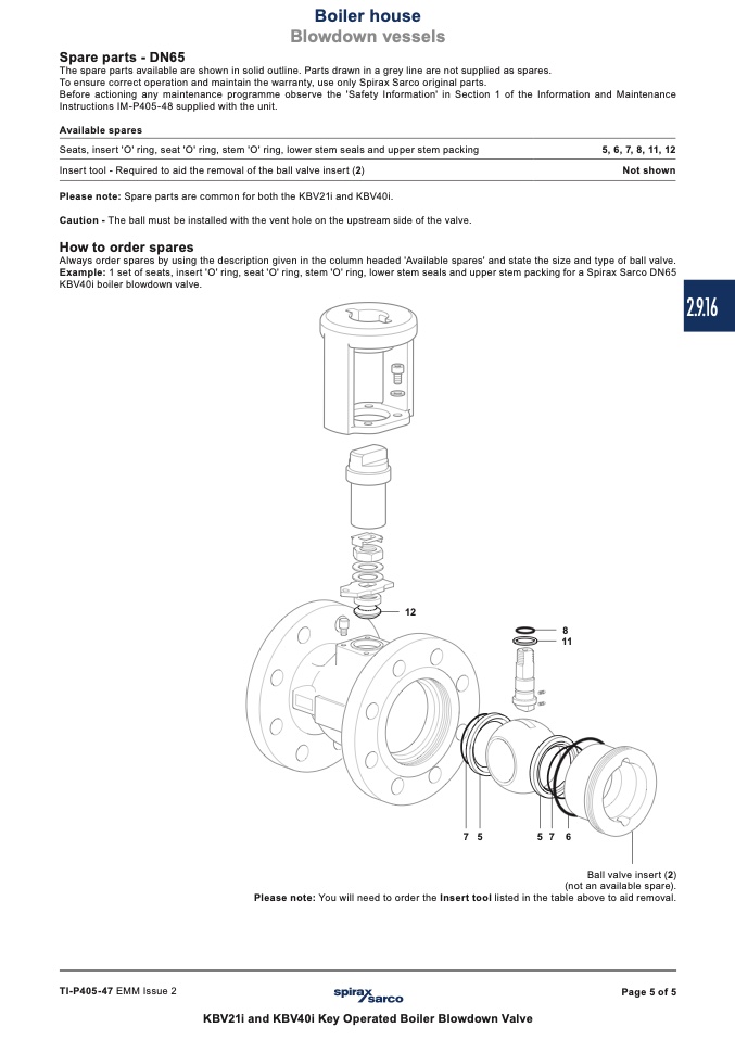 Please note: Spare parts are common for both the KBV21i and KBV40i.