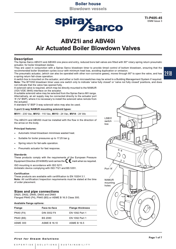 They are used in conjunction with a Spirax Sarco blowdown timer to provide timed control of bottom blowdown, ensuring that the