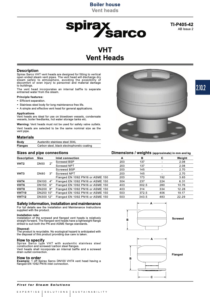 Spirax Sarco VHT vent heads are designed for fitting to vertical