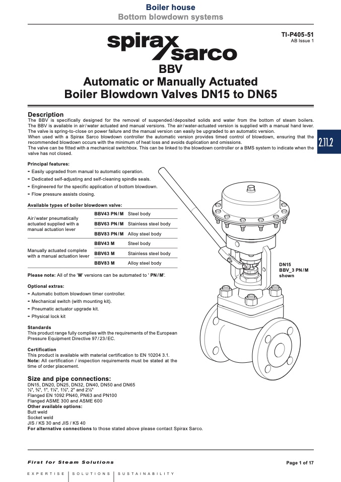 The BBV is specifically designed for the removal of suspended/deposited solids and water from the bottom of steam boilers.