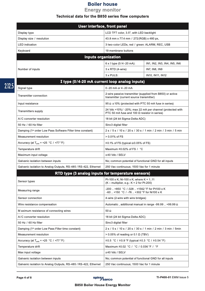 6 x I type (0/4-20 mA): IN1, IN2, IN3, IN4, IN5, IN6