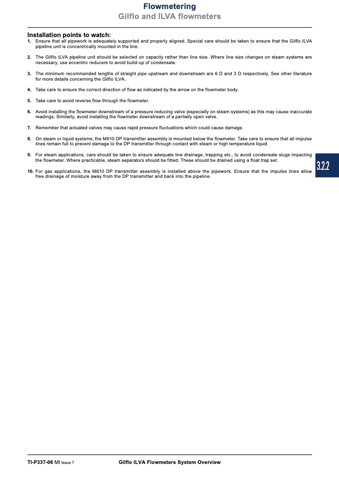 the flowmeter. Where practicable, steam separators should be fitted. These should be drained using a float trap set.