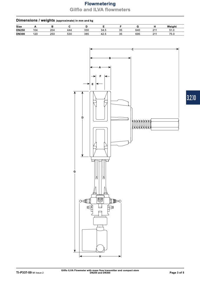 Gilflo ILVA Flowmeter with mass flow transmitter and compact stem