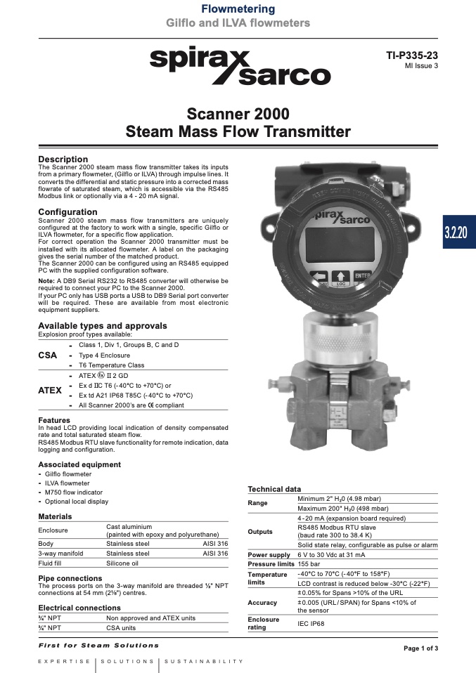 The Scanner 2000 steam mass flow transmitter takes its inputs