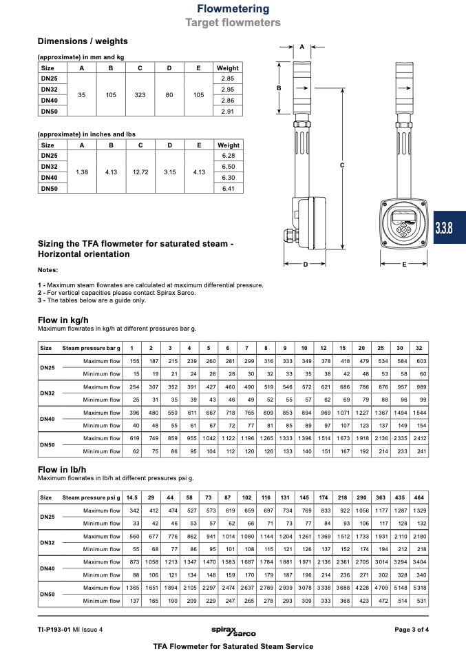 1 - Maximum steam flowrates are calculated at maximum differential pressure.