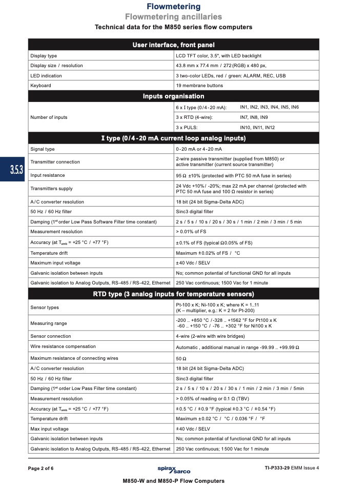 Galvanic isolation to Analog Outputs, RS-485 / RS-422, Ethernet 250 Vac continuous; 1500 Vac for 1 minute