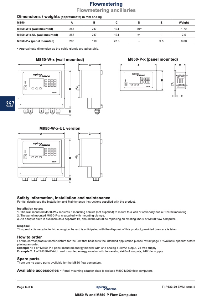 3. An adaptor plate is available as a separate kit, should the M850 be replacing an existing M200 or M800 flow computer.