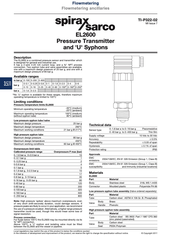 The EL2600 is a combined pressure sensor and transmitter which