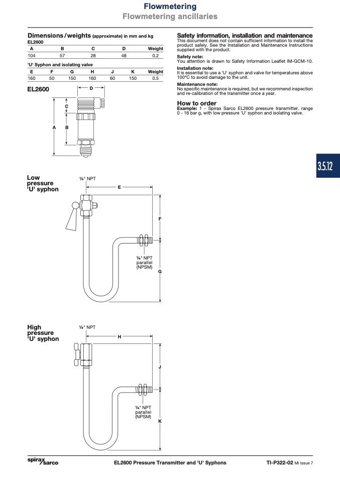 EL2600 Pressure Transmitter and 'U' Syphons