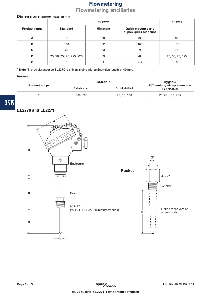 * Note: The quick response EL2270 is only available with an insertion length of 40 mm.