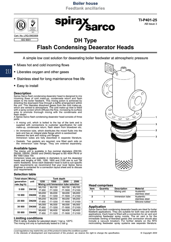 Spirax Sarco flash condensing deaerator heads are ideal for boiler