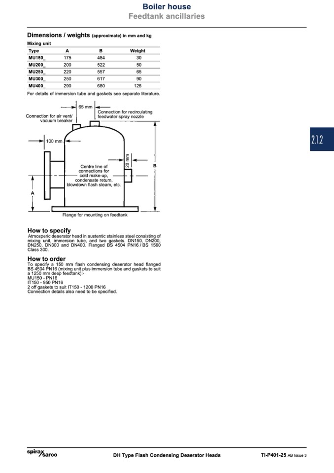 To specify a 150 mm flash condensing deaerator head flanged