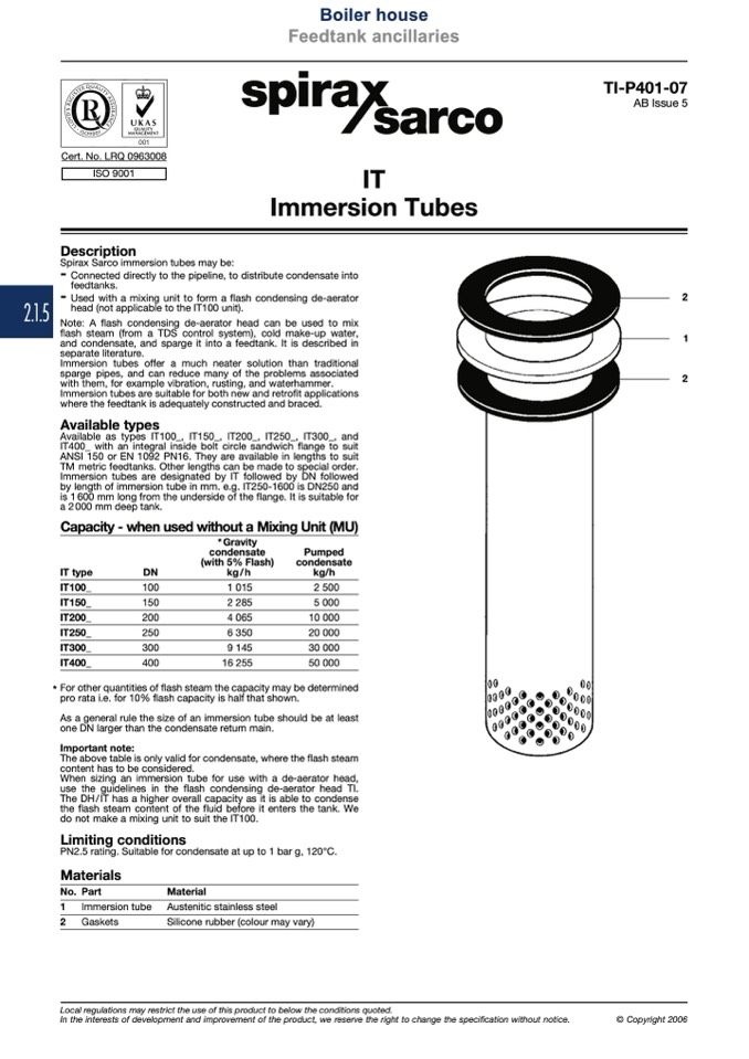 Immersion tubes are designated by IT followed by DN followed