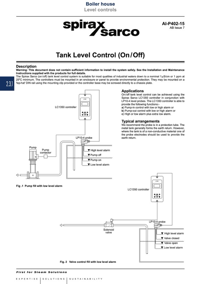 Spirax Sarco LC1350 controller in conjunction with