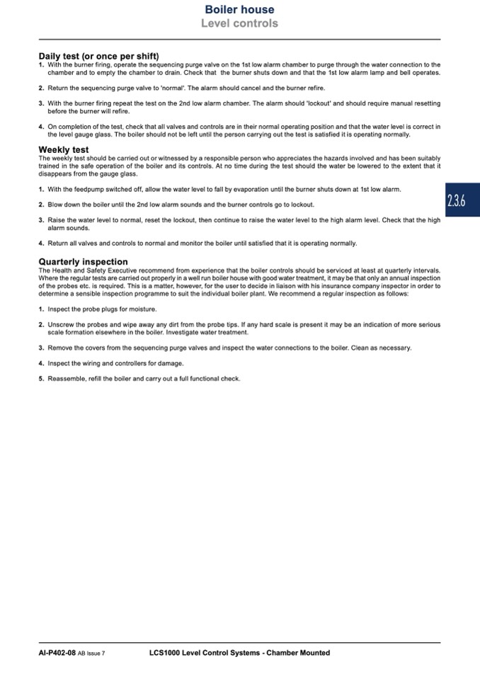 determine a sensible inspection programme to suit the individual boiler plant. We recommend a regular inspection as follows: