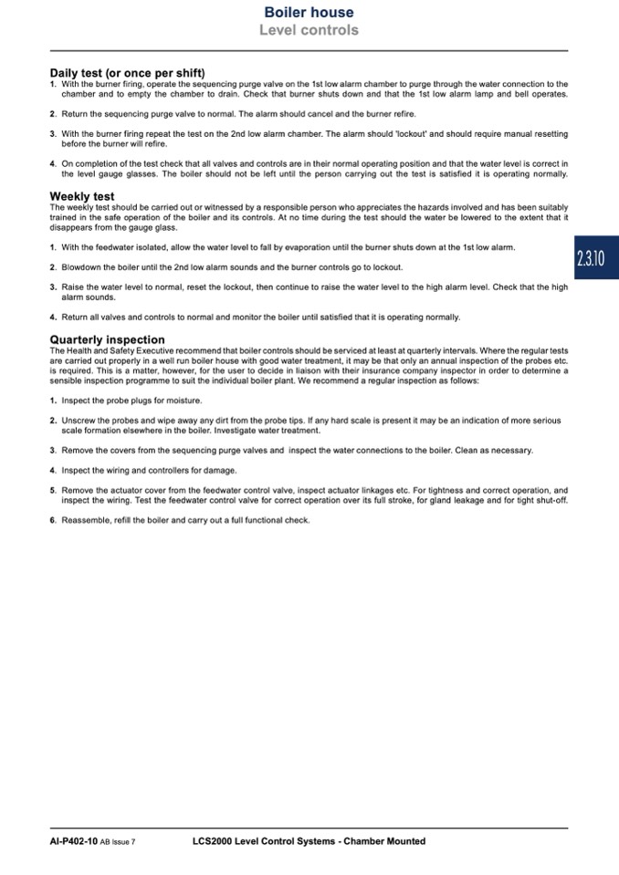 the level gauge glasses. The boiler should not be left until the person carrying out the test is satisfied it is operating normally.