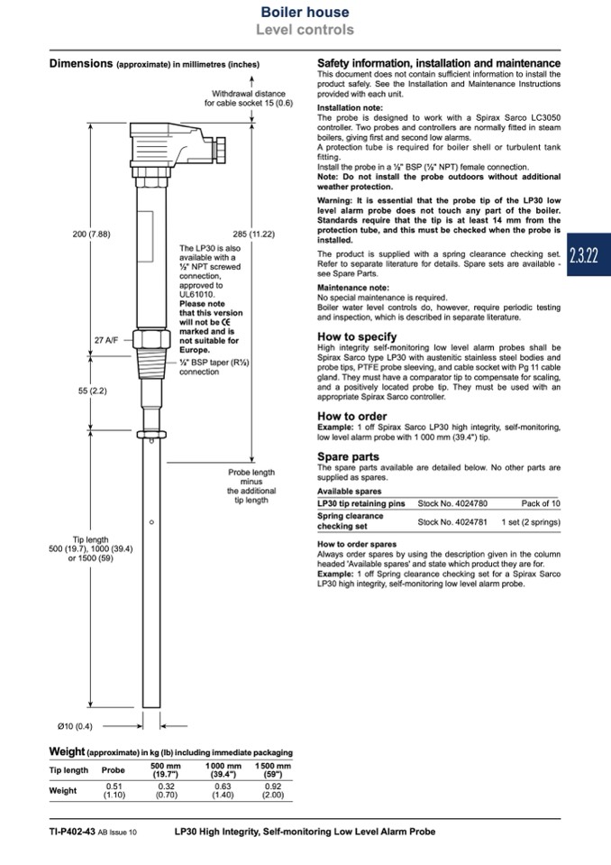 The probe is designed to work with a Spirax Sarco LC3050