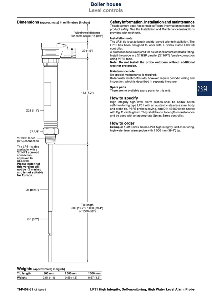 LP31 has been designed to work with a Spirax Sarco LC3050