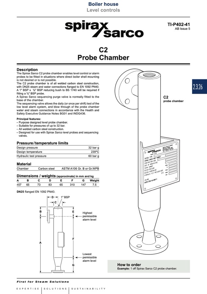The Spirax Sarco C2 probe chamber enables level control or alarm