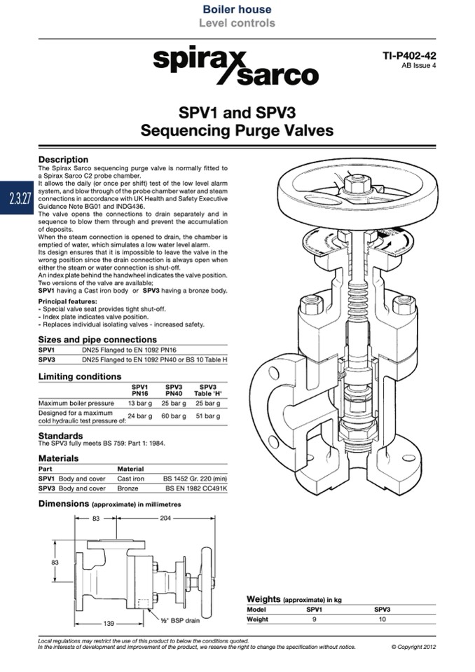 SPV1 having a Cast iron body or SPV3 having a bronze body.