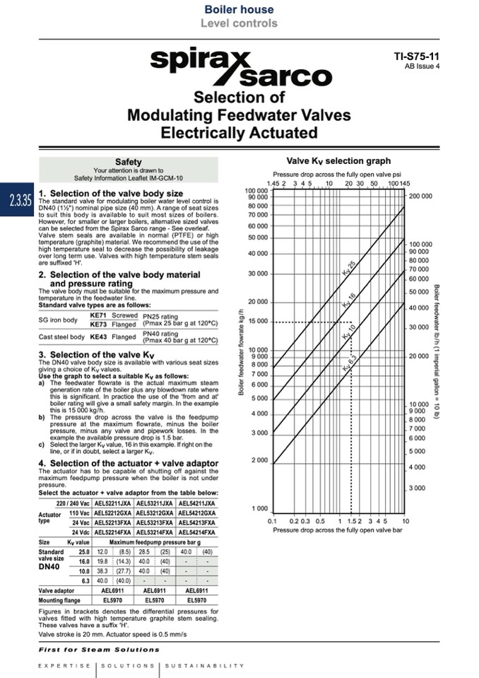 can be selected from the Spirax Sarco range - See overleaf.