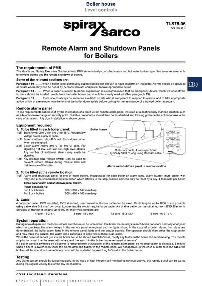 relay and a mushroom headed stop button which latches in the stop position and can only be reset by a key. 4 terminals per boiler.