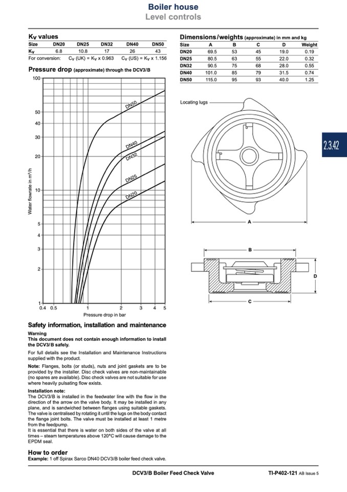 Example: 1 off Spirax Sarco DN40 DCV3/B boiler feed check valve.