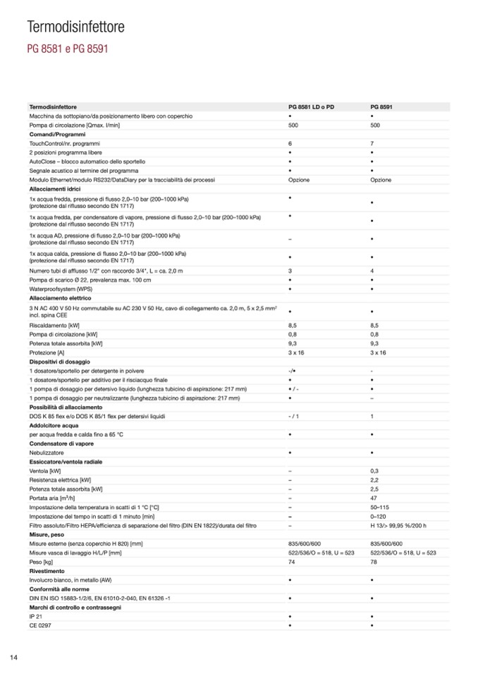 DIN EN ISO 15883-1/2/6, EN 61010-2-040, EN 61326 -1