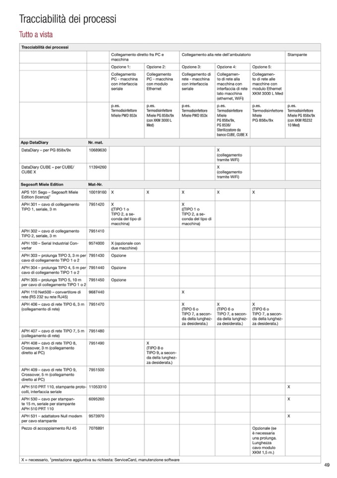 X = necessario, 1prestazione aggiuntiva su richiesta: ServiceCard, manutenzione software