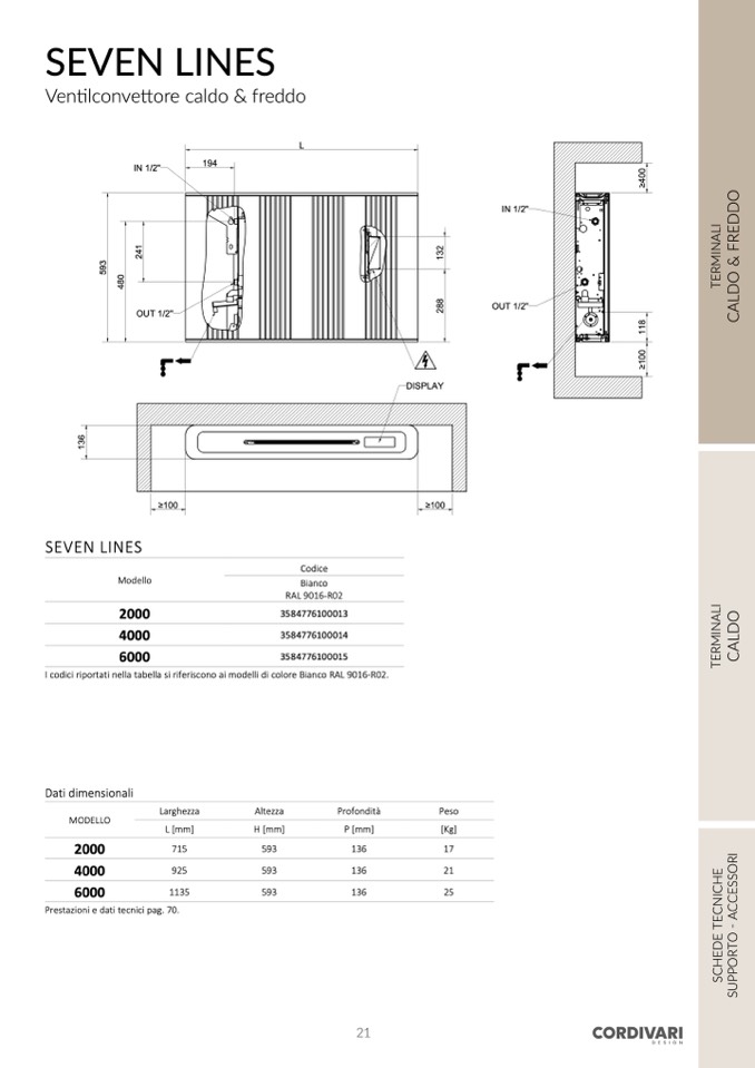 I codici riportati nella tabella si riferiscono ai modelli di colore Bianco RAL 9016-R02.