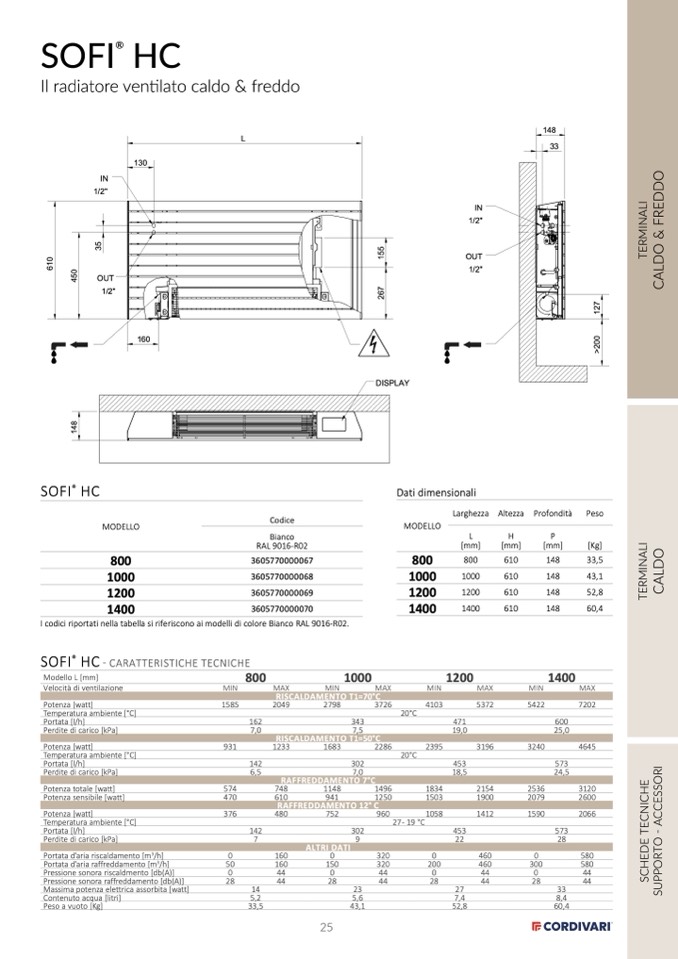 I codici riportati nella tabella si riferiscono ai modelli di colore Bianco RAL 9016-R02.