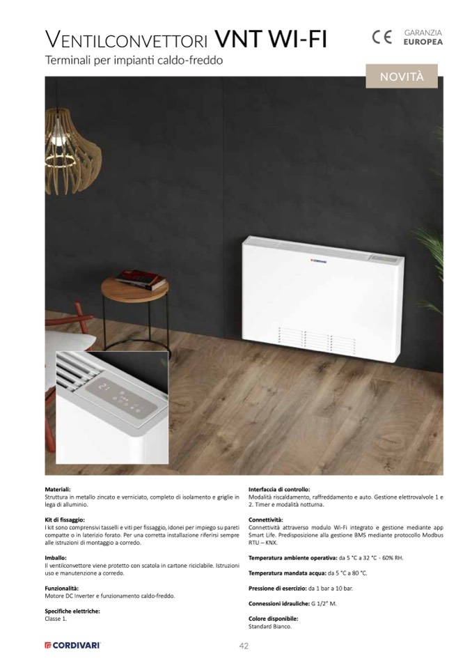 Il ventilconvettore viene protetto con scatola in cartone riciclabile. Istruzioni