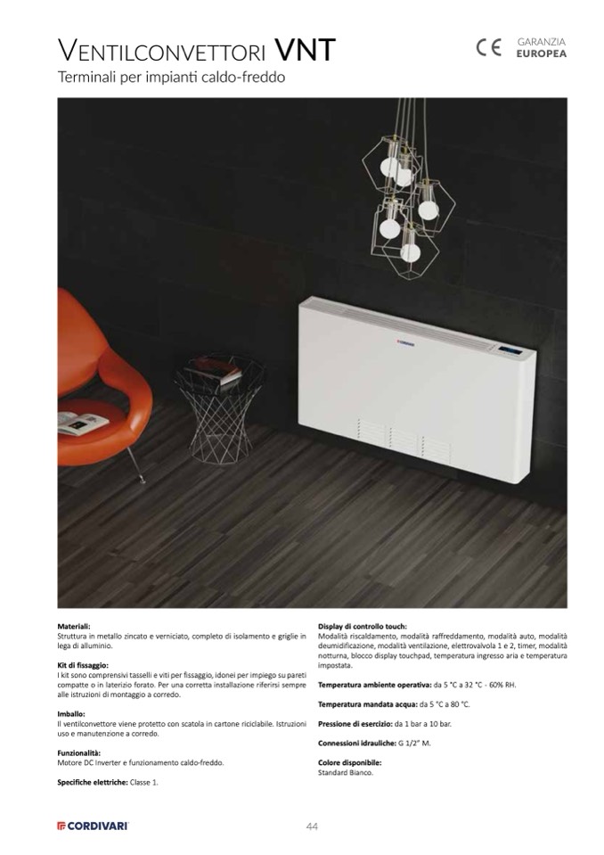Il ventilconvettore viene protetto con scatola in cartone riciclabile. Istruzioni