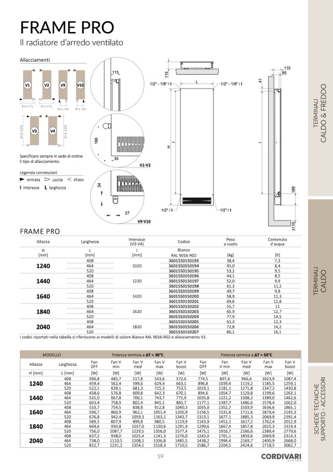 I codici riportati nella tabella si riferiscono ai modelli di colore Bianco RAL 9016-R02 e allacciamento V1.