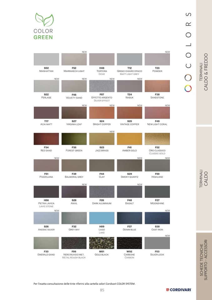 Per l’esatta consultazione delle tinte riferirsi alla cartella colori Cordivari COLOR SYSTEM.