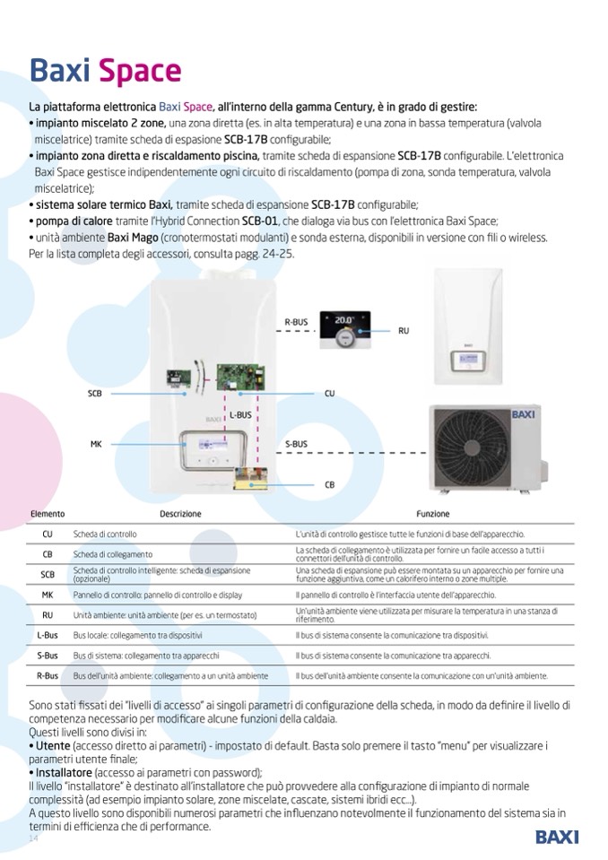 • pompa di calore tramite l’Hybrid Connection SCB-01, che dialoga via bus con l’elettronica Baxi Space;
